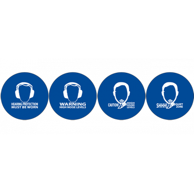 "Hørebeskyttelsen skal bæres" er egnet i områder, hvor hørebeskyttelse skal bæres. "advarsel! høje lydniveauer "er egnet i støjende områder, hvor der ikke er behov for hørselsbeskyttelse.
