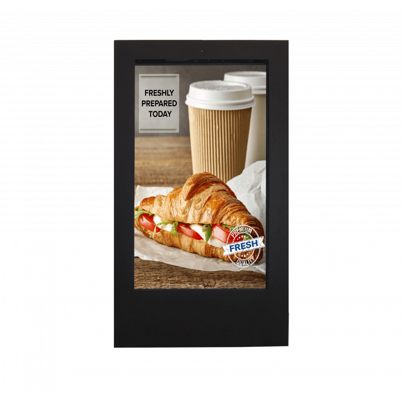 The 43-inch screen is high-definition and has a 700 NITS rating. Your promotions stay clear and readable in bright locations, for maximum effectiveness.