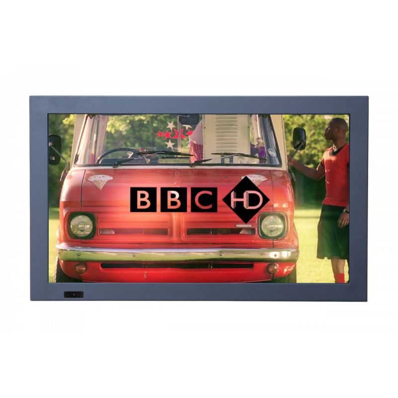 The TVs are dust-proof and splash-proof. Safety glass protects the screen. This makes the TVs suitable for potentially hazardous areas such as gardens, outdoor parties, and near swimming pools.