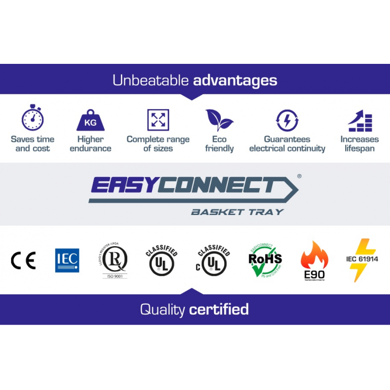 EASYCONNECT basket cable trays are fully certified and guaranteed.