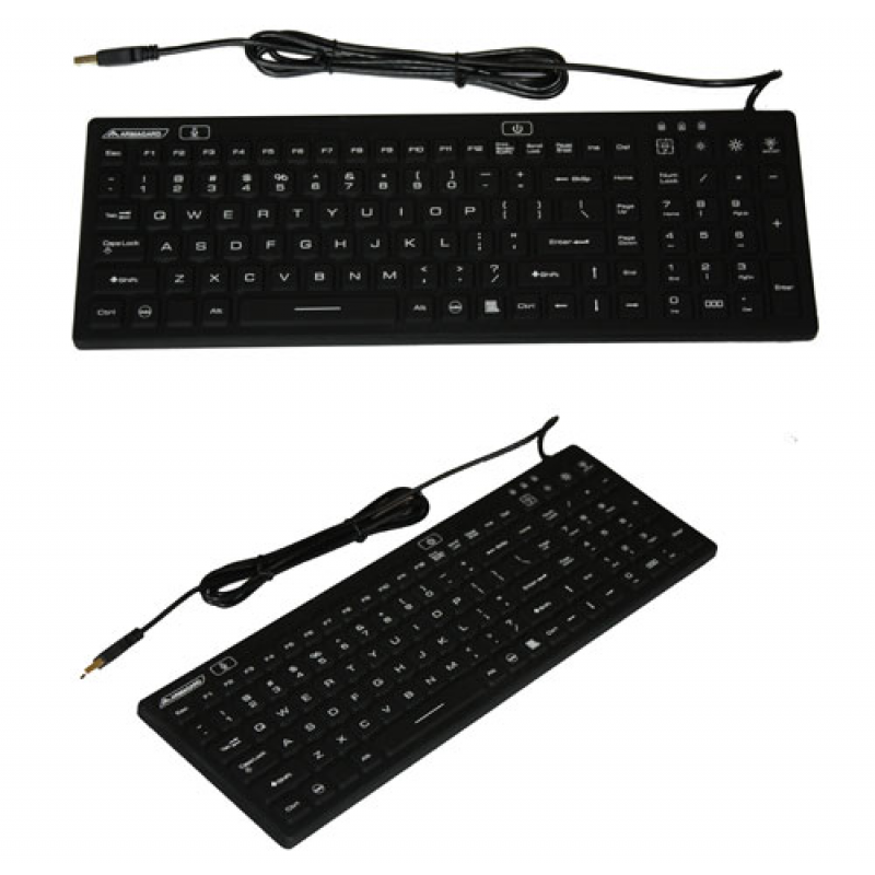 मंद के लिए आदर्श नीचे क्षेत्रों धोने जलाया, armagard से प्रबुद्ध कुंजीपटल यह आसान कम रोशनी के वातावरण में टाइप करने के लिए बनाता है और पूरी तरह से एक IP65 रेटिंग के निविड़ अंधकार है। अंधेरे या कम रोशनी विनिर्माण या चिकित्सा सुविधाएं के लिए आदर्श