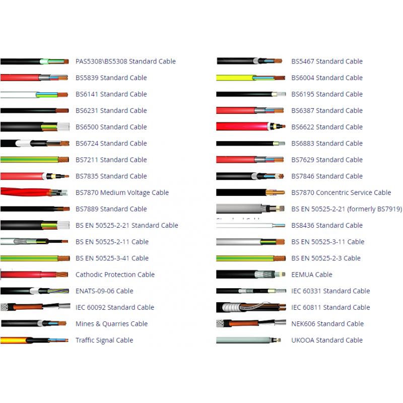 すべてのケーブルは、EEMUA 133、BS 5308、BS 6195、BS 7655、NEK 606、BS 638、VDEO 282、EN 50288、DIN 89160、ENATS、IEC、UKOOAを含む英国、