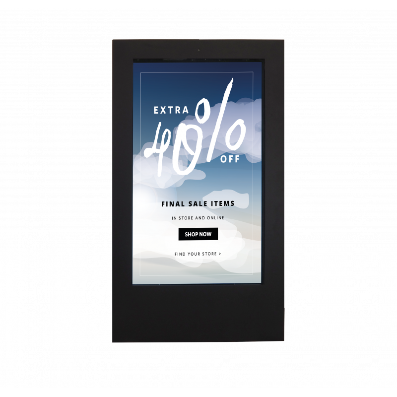 Bruk digitale tegn på hjul for å tiltrekke seg kunder på gågater. Dobbeltsidet design engasjerer oppmerksomheten til folk som går i begge retninger. De 2,500 NITS-skjermene holder kampanjene dine lesbare i direkte sollys.