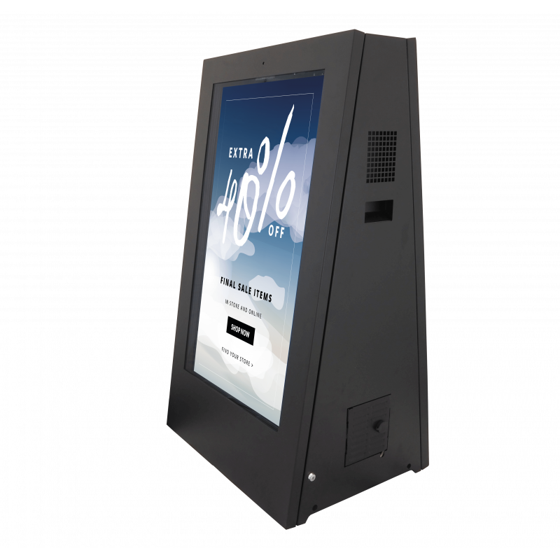 Hjulhjul gjør det enkelt å plassere det digitale sandwichbordet på det mest synlige stedet. En IP56-klassifisering beskytter skjermene mot vann og støv. Et miljøstyringspanel lar deg bruke den digitale A-rammen fra -30 ° C til 43 ° C.
