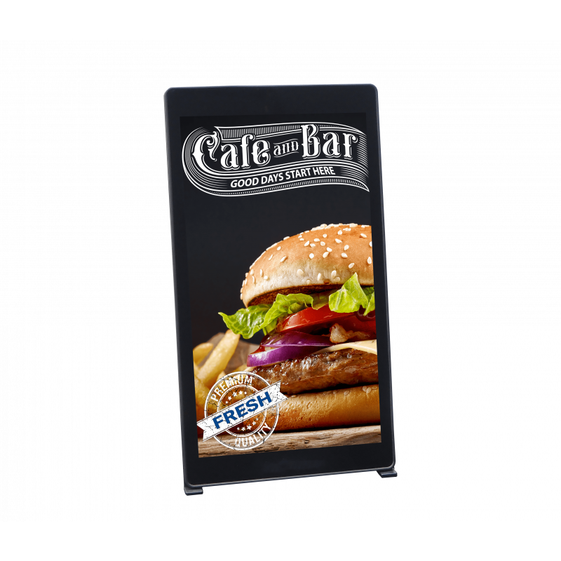 O display digital de sinalização A-frame independente faz com que a publicidade digital seja fácil e eficaz.