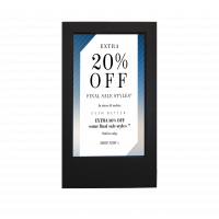 Блокируемые колеса позволяют легко перемещаться в лучшую позицию. Два 43-дюймовых экрана привлекают внимание покупателей. Рейтинг IP56 означает, что вы можете использовать его на открытом воздухе.